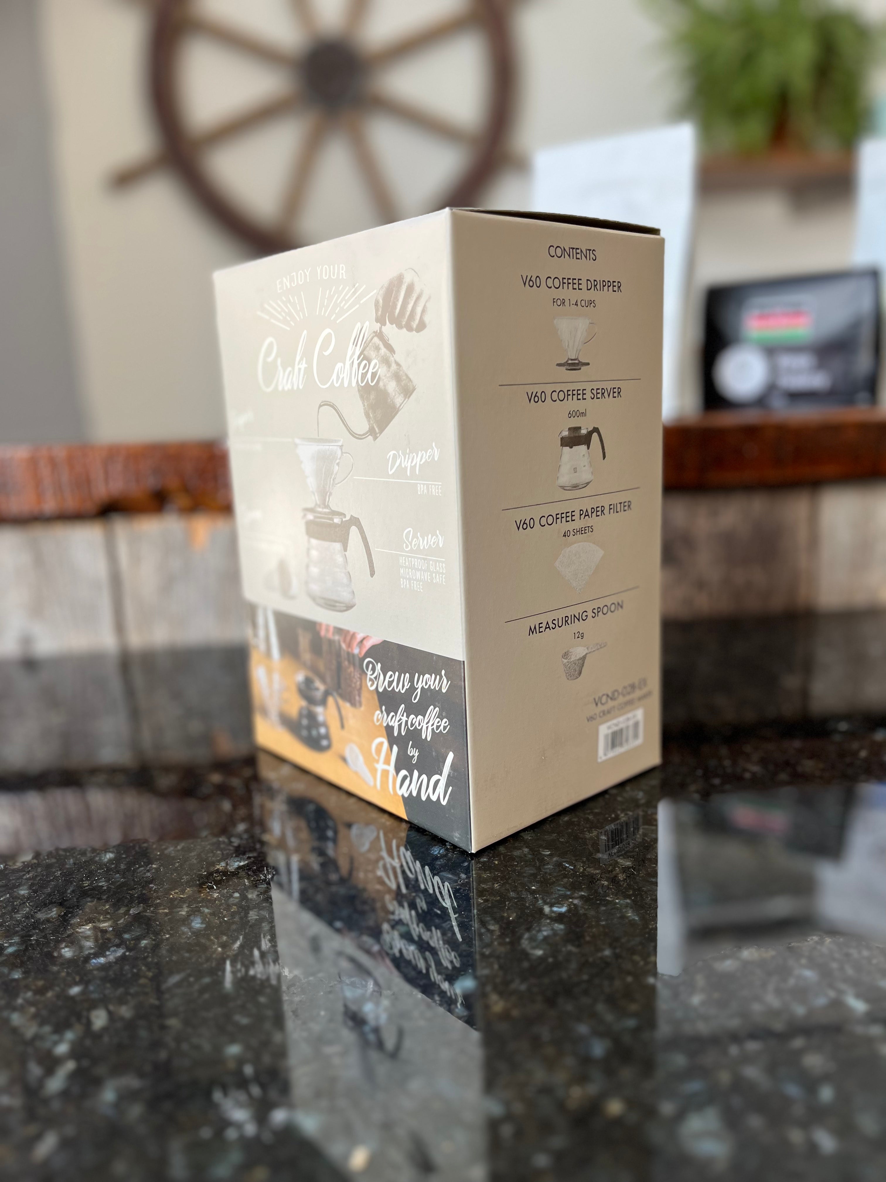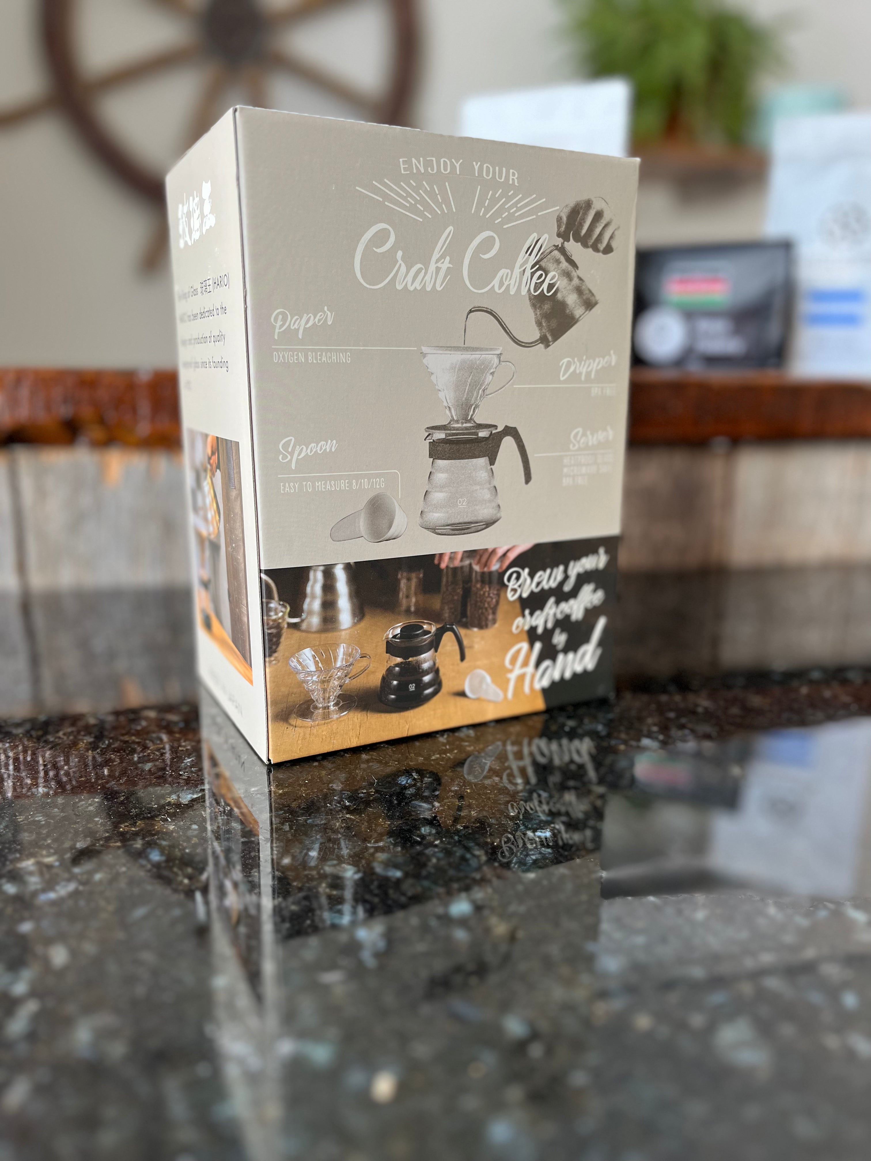 If you're looking to get started with coffee brewing, or know someone you'd like to get started with manual brewing (and maybe the have a birthday coming up), then this Hario starter set was made for you. This great value boxed set comes with a Hario V60-02 Clear Coffee Dripper, a Hario V60-02 Diner Coffee Server, and a 40-pack of white V60-02 filters.